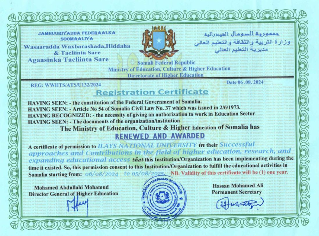 Gooraha wax dhigashada iyo fasaxyada Jaamacadda Ummadda Ilays ee sannad ollogeedka 2025/2026 |