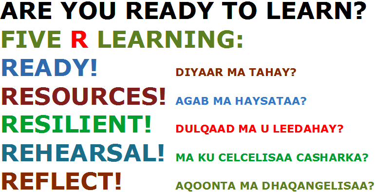 Liibaane fur maskaxdaada adiga oo baraarugsan si aad u qaadato aqoon cusub iyo xirfadaha taabagalka ah ee ay kuu diyaarisay Jaamacadda Ummadda Ilays. Ardayga raadinaya waxbarasho waa in uu ogaado in hanashada aqoontu u baahan tahay waqti dheer, dadaal badan, karti dardar leh, go’aan qaadasho adag, iyo halgan adag. Sidii Cali Dhuux Aadam yidhi: “Raacdadu hadday kaa dhab tahay Dhebi dagaalkeedu. Adoo dhididayaa loo ridaa dhamac rasaaseede.” Allaah (sw) waxa uu yidhi: kuwa Allaah (sw) xaggiisa iyo dartiis u dadaala waxa aannu ku hanuuninaynaa jidadkayaga toosan ee ay horumar ku gaadhayaan.